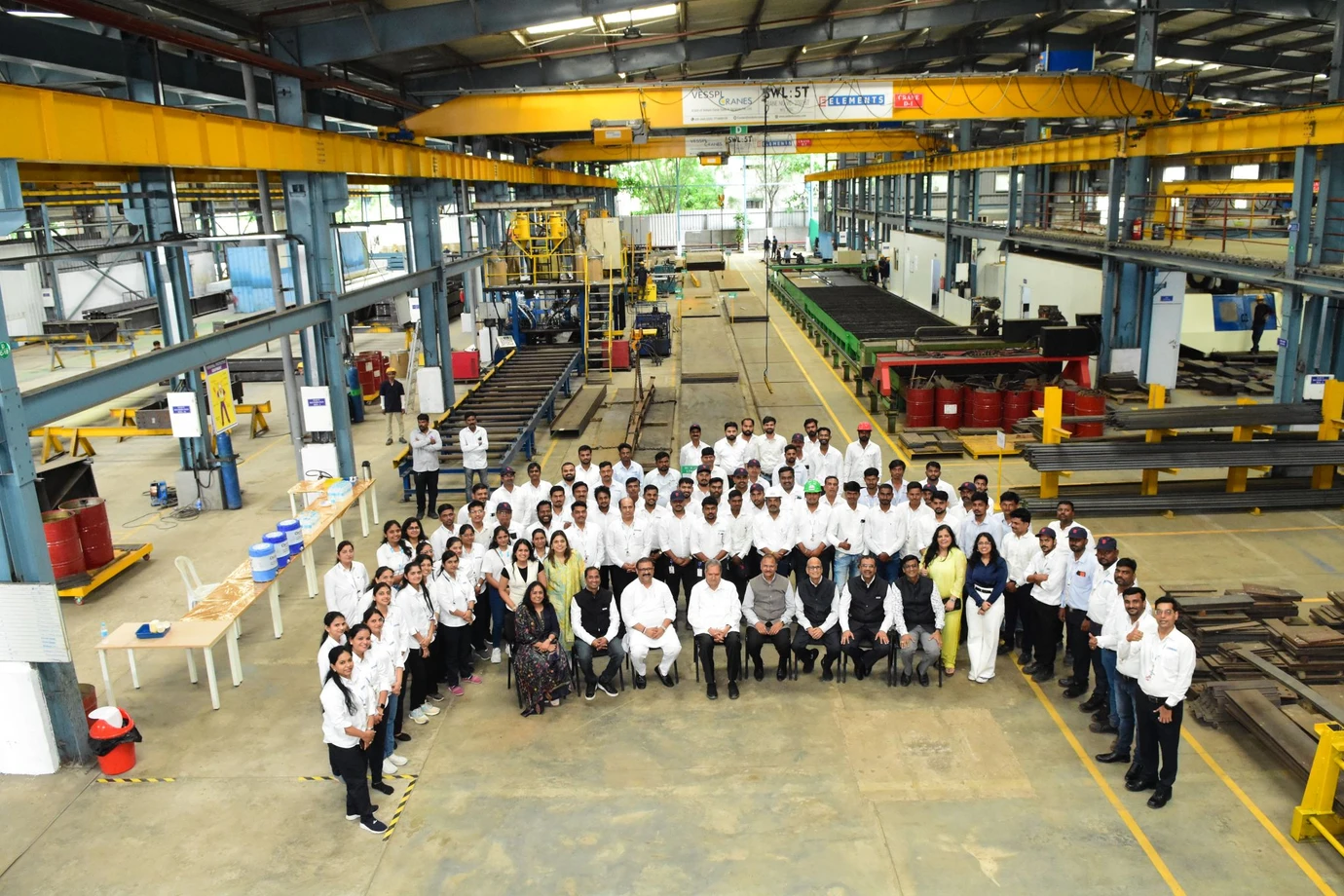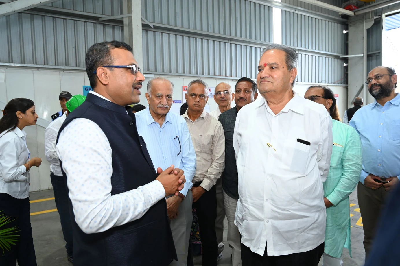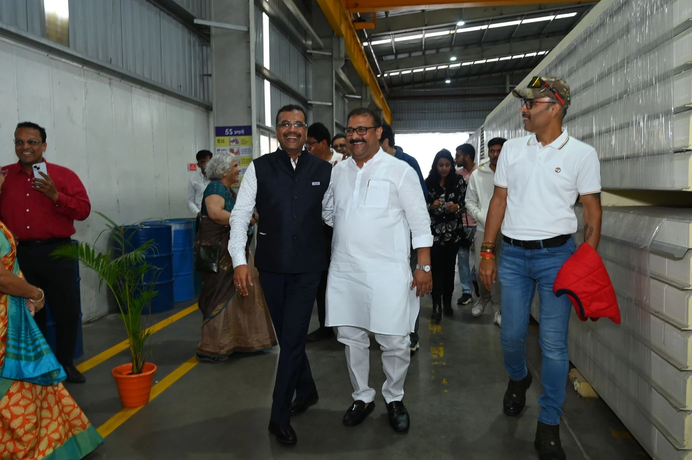 Bhaiji began his visit with Plant 1, our state-of-the-art Pre-Engineered Building (PEB) manufacturing facility, spread across 1.25 lakh sq. ft. The facility stands as a benchmark for modern infrastructure, equipped for high-volume, precision-driven structural fabrication. It reflects our commitment to building with efficiency, strength, and scale.